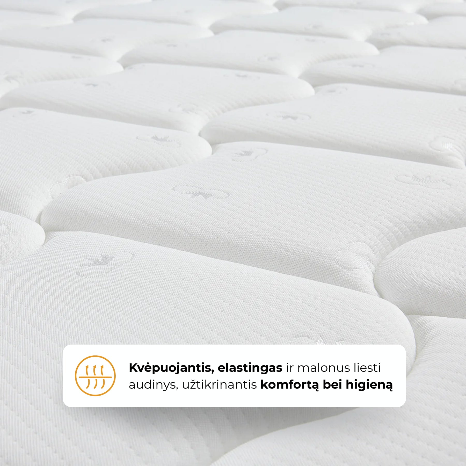 Elastingas megztas audinys maloniai priglunda, leidžia odai kvėpuoti ir palaiko švarą – sveikesniam miegui kasdien.