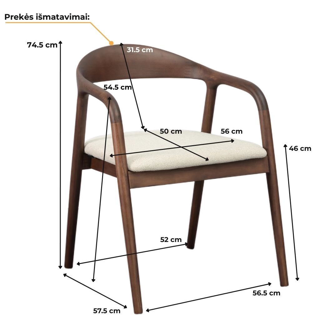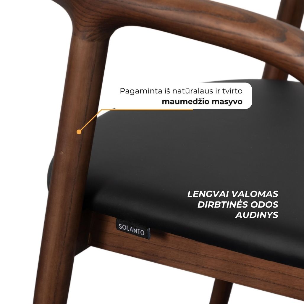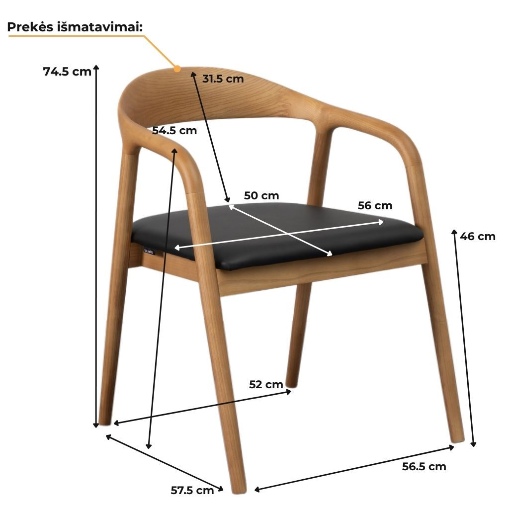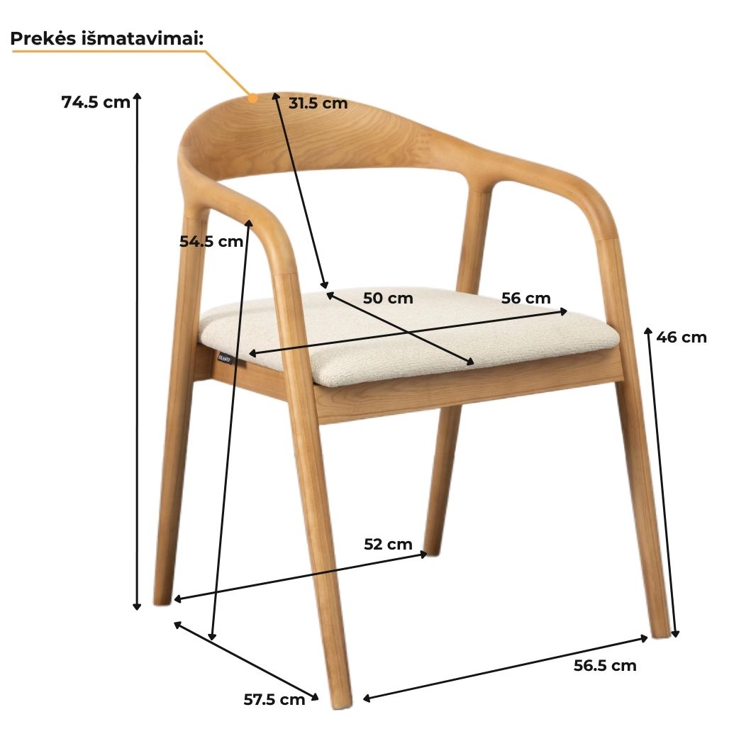 Iš medžio masyvo pagaminta konstrukcija, apvalintos porankių linijos ir minkšta sėdimoji dalis kuria jaukų, bet aiškų charakterį. Kėdė nereikalauja montavimo, todėl vientisa konstrukciją užtikrina didelį stabilumą ir ilgaamžiškumą.